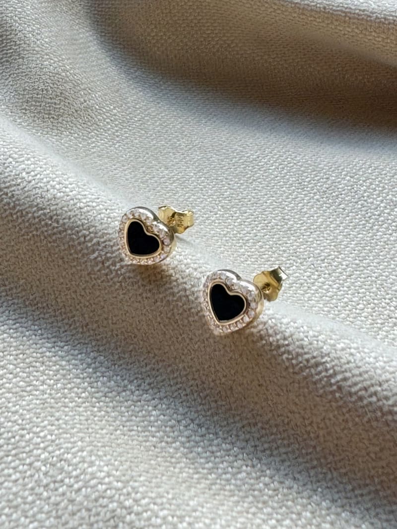 Złote kolczyki SERDUSZKA CZARNE próba 585