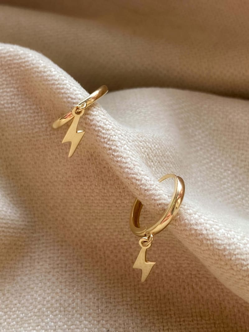 Piękne kolczyki Kółka z błyskawicą idealnie prezentują się na uchu.