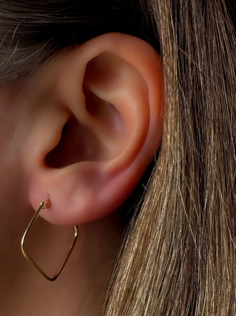 Piękne kolczyki Kwadraty idealnie prezentują się na uchu. Są efektowne, eleganckie i ponadczasowe. Wyróżniają się subtelnym, ale efektownym designem.