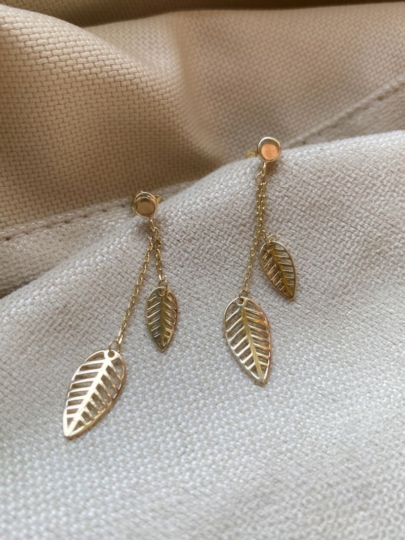 Złote kolczyki WISZĄCE LISTKI próba 585