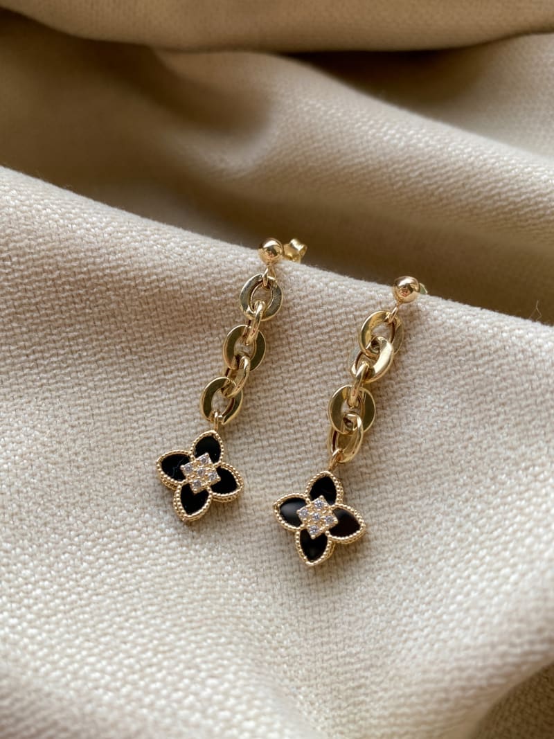Piękne kolczyki Wiszące kwiatki idealnie prezentują się na uchu, są eleganckie, wyglądają na uchu bardzo okazale.