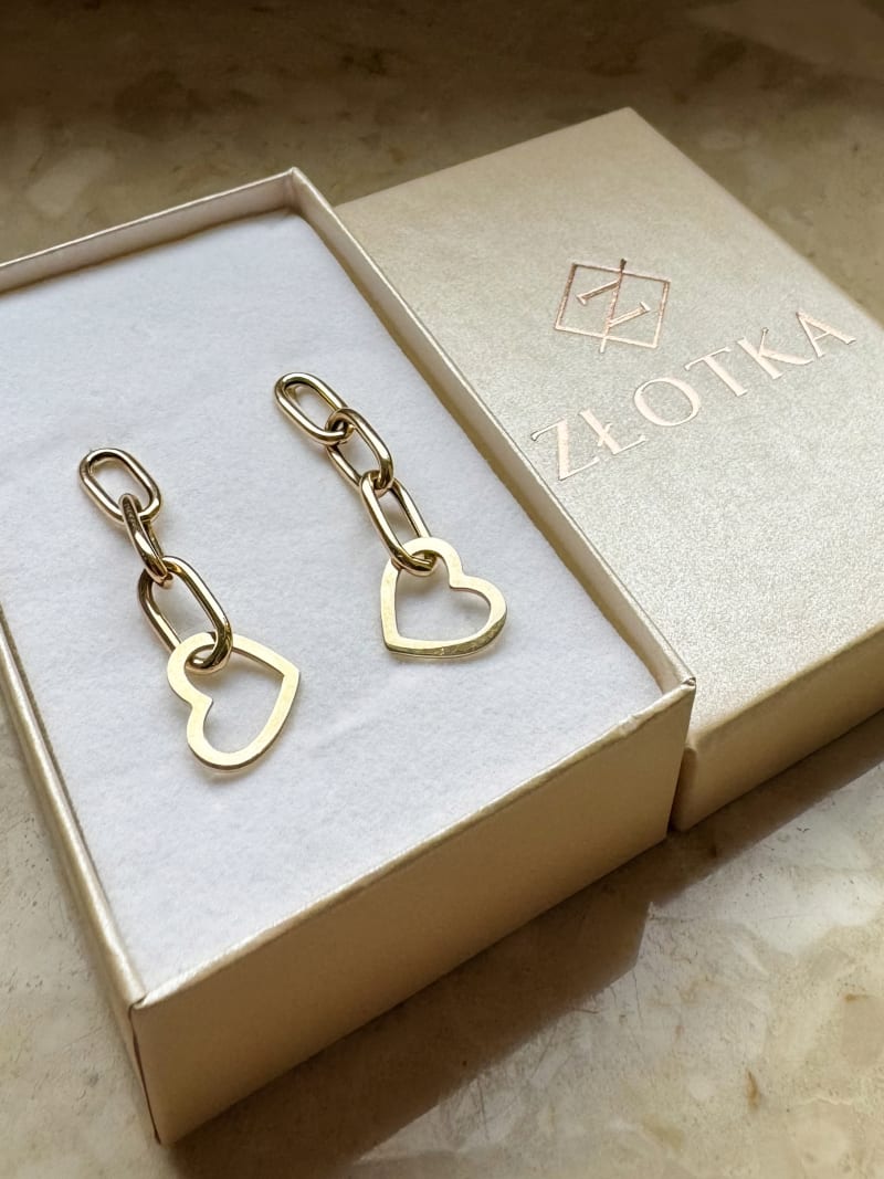 Złote kolczyki WISZĄCE SERCA próba 585