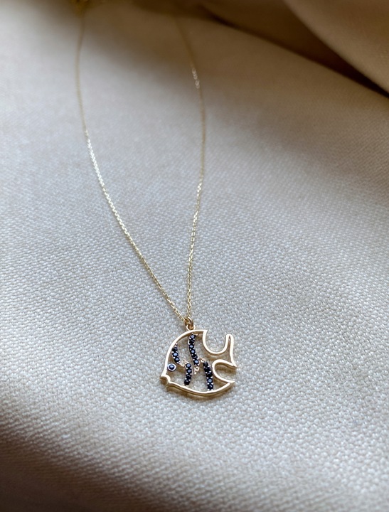 Złoty naszyjnik 585 RYBA Z CYRKONIAMI