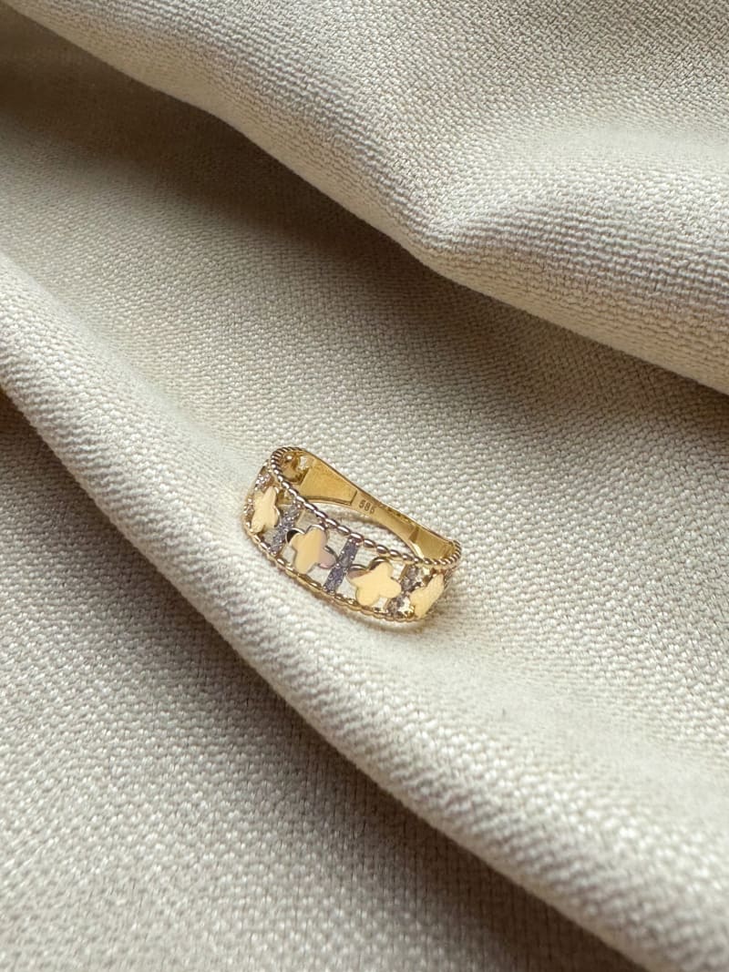 Piękny pierścionek Koniczynka jest kobiecy, dodaje uroku i sprawia, że dłoń wygląda bardzo subtelnie. Ozdobiony jest cyrkoniami, co sprawia że pasuje do każdej stylizacji i ładnie się błyszczy.
