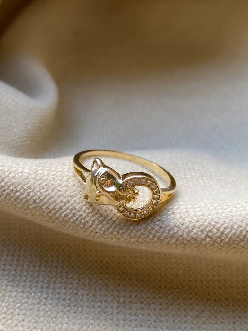 Piękny pierścionek Pantera jest elegancki, ponadczasowy i bardzo modny. Ozdobiony jest cyrkoniami, co sprawia że pasuje do każdej stylizacji i ładnie się mieni.