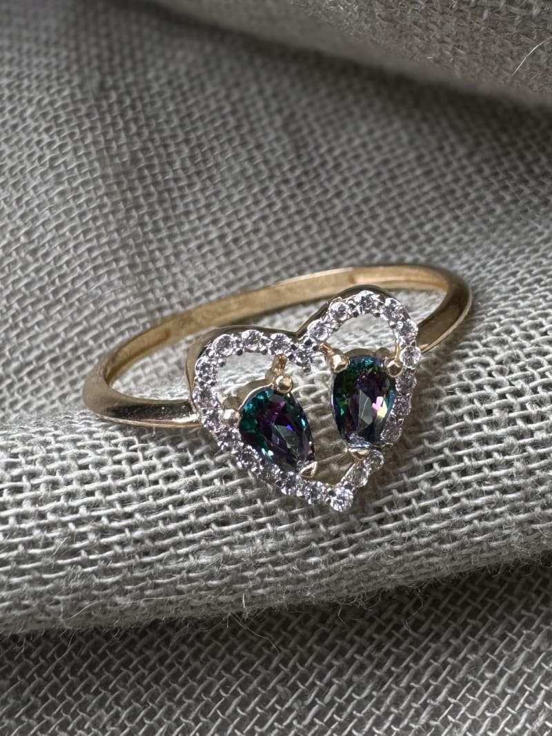 Piękny pierścionek Serce z kamieniami jest kobiecy, nowoczesny i sprawia, że dłoń wygląda bardzo subtelnie.