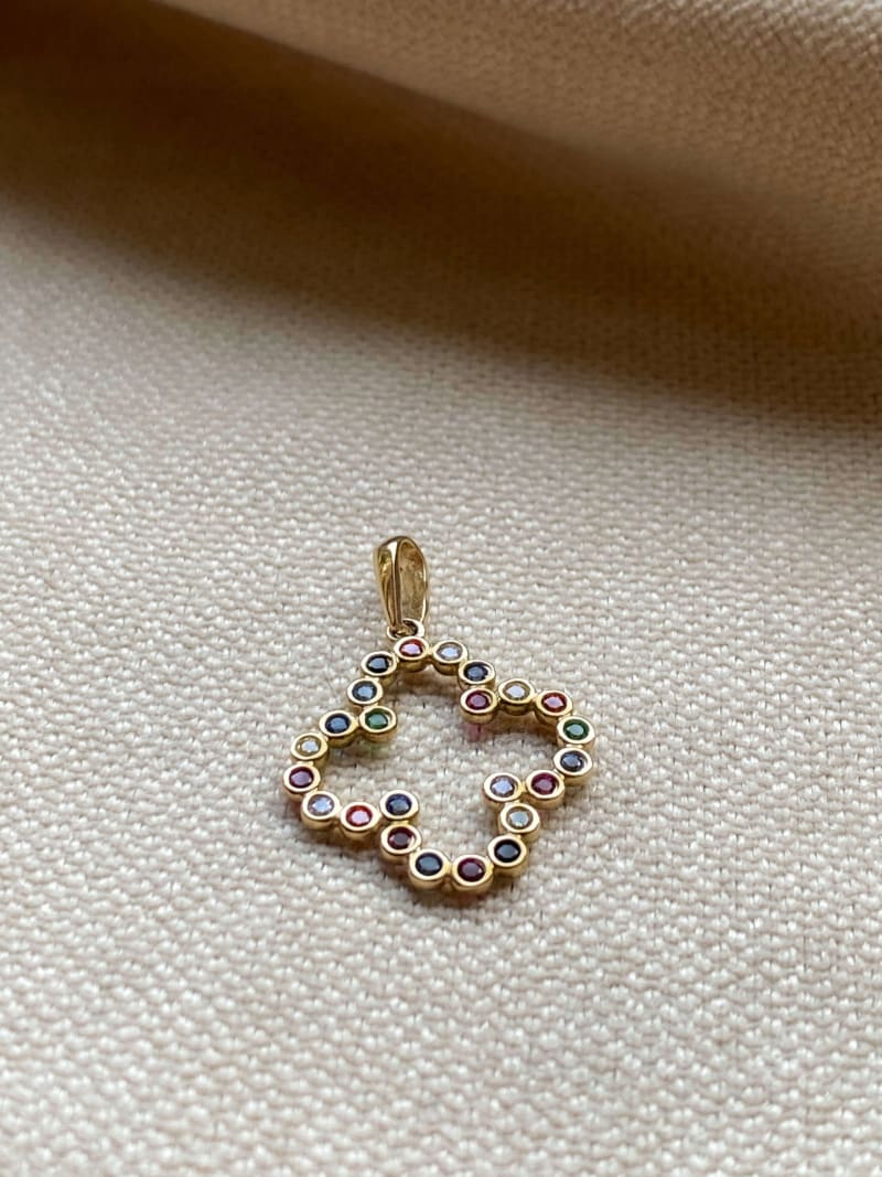 Piękna zawieszka Koniczynka bardzo ładnie prezentuje się na szyi. Jest delikatna, a jednocześnie wygląda bardzo efektownie. Ozdobiona jest kolorowymi cyrkoniami.