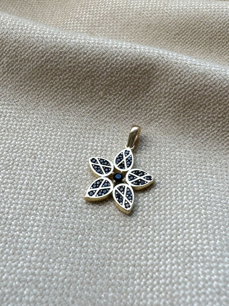 Piękna zawieszka Kwiatek ozdobiona jest cyrkoniami, bardzo ładnie prezentuje się na szyi.