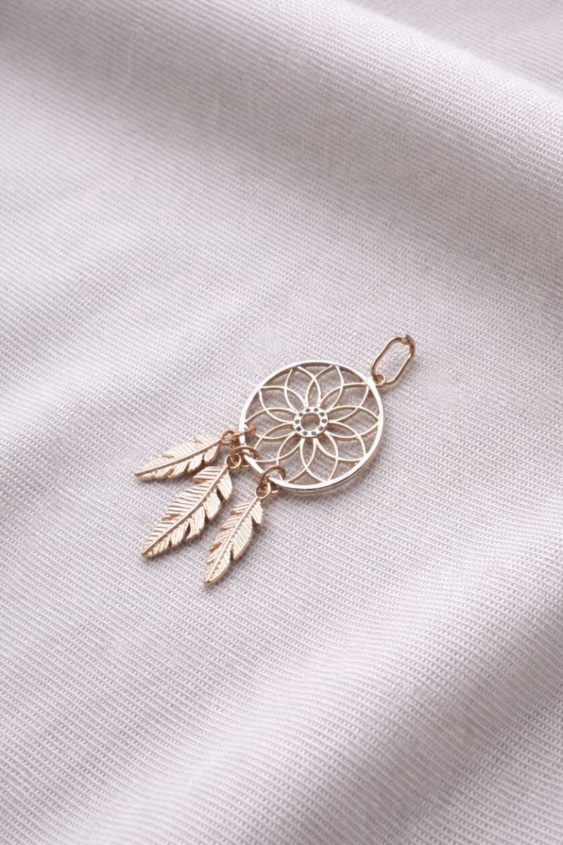 Zawieszka ŁAPACZ SNÓW wykonana jest w całości ze złota. Idealna dla miłośników unikalnych i stylowych dodatków.